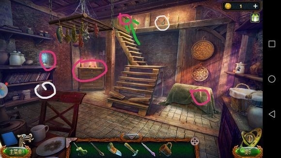 楼梯上门——用钥匙——寻物游戏——玻璃